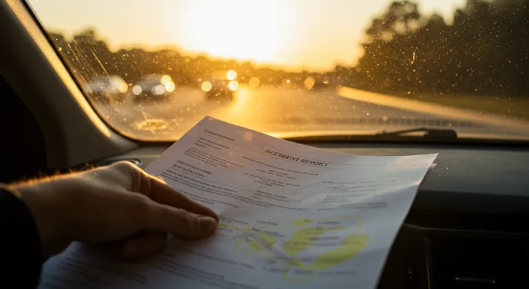 Call 911 to report the accident and seek medical attention for any injuries. Exchange information with the other driver, including name, insurance details, and contact information. Document the scene with photos and videos, and contact a car accident lawyer as soon as possible.